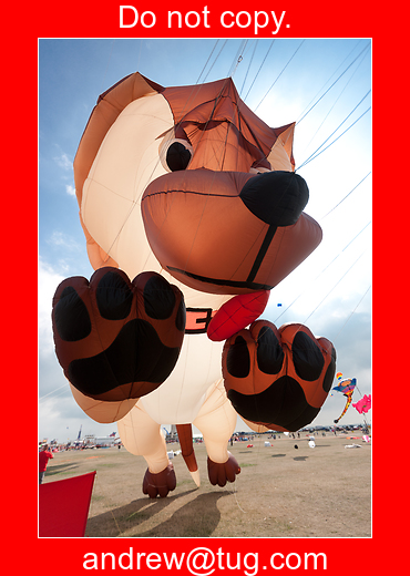 The dog is cute, cuddly and happy. He has big floppy ears, a collar and his tongue hanging out. What he lacks in aerodynamic efficiency, he makes up for with playful exuberance.